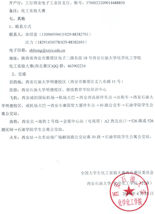 5、参赛队伍请填写报名表,盖章后制作成pdf文件,5月30日前发到邮箱shfsong@xsyu.edu.cn。报名表文件与邮件命名为“化工实验大赛-学校-队名”,报名表见附件。