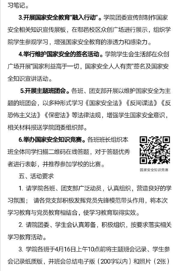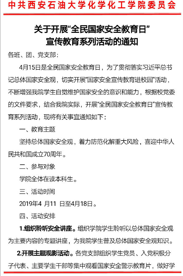 【学生工作】关于开展“全民国家安全教育日”宣传教育系列活动的通知