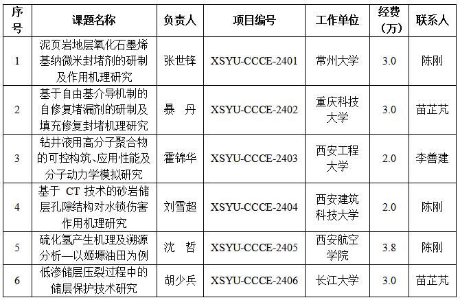关于2024年度陕西省油气田环境污染控制技术与储层保护重点实验室-油气田化学陕西省高校工程研究中心联合开放基金立项名单公示