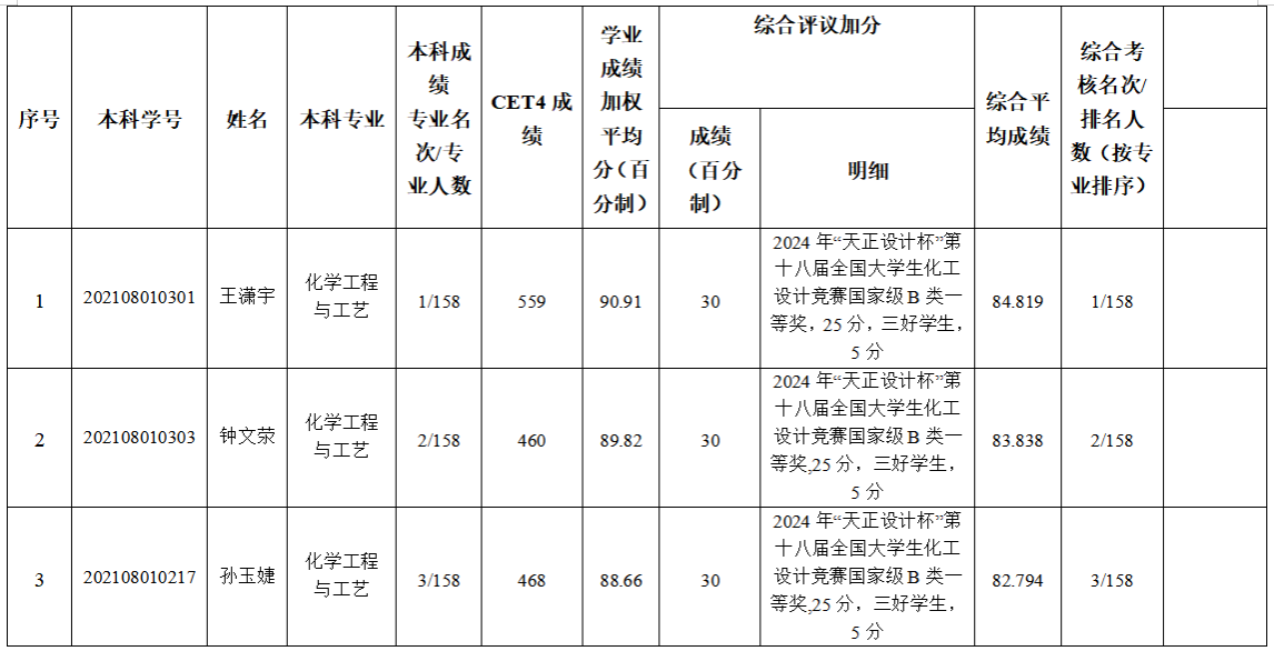 根据《西安石油大学推荐、接收优秀应届本科毕业生免试攻读硕士学位研究生管理办法(修订)》(西石大研〔2021〕227号)文件精神、《西安石油大学关于做好2025年推荐优秀应届本科毕业生免试攻读硕士学位研究生工作的通知》和《英国365推荐2025届优秀应届本科毕业生免试攻读硕士学位研究生实施细则》文件要求,经学生自愿申请,学院及学校相关部门资格审核,学院推免生工作领导小组审定,现将我院2025届本科毕业生推荐免试攻读硕士学位研究生名单公示如下: