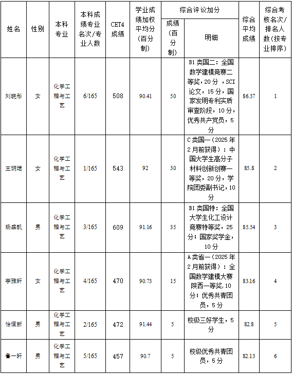 根据《西安石油大学推荐、接收优秀应届本科毕业生免试攻读硕士学位研究生管理办法(修订)》(西石大研(2021)227号)文件精《西安石油大学关于做好2026年推荐优秀应届本科毕业生免试攻读硕士学位研究生工作的通知》和《英国365推荐2026届优秀应届本科毕业生免试攻读硕士学位研究生实施细则》文件要求,经学生自愿申请,学院及学校相关部门资格审核,学院推免生工作领导小组审定,现将我院2026届本科毕业生推荐免试攻读硕士学位研究生名单公示如下: